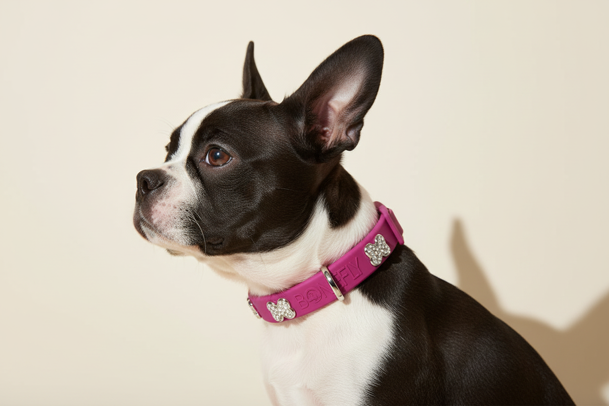 The Bonefly store is a modern, luxury pet-lifestyle boutique—clean, bright, and curated like a high-end fashion space. Premium silicone accessories, customization experience, and crystal details are showcased in a minimalistic setting, creating an elevated, shopping experience that celebrates style, comfort, and the bond between you and your dog.